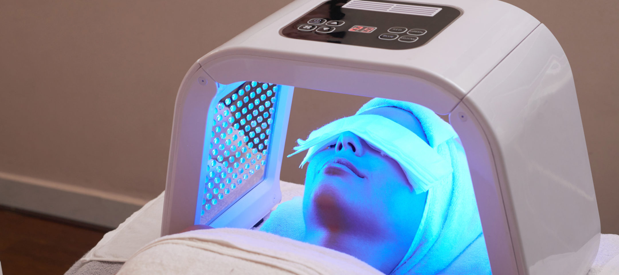 Un appareil émettant des diodes électroluminescentes (LED) est placé à quelques centimètres de votre visage ou de la zone à traiter. Les longueurs d'onde spécifiques sont sélectionnées en fonction de vos besoins cutanés.